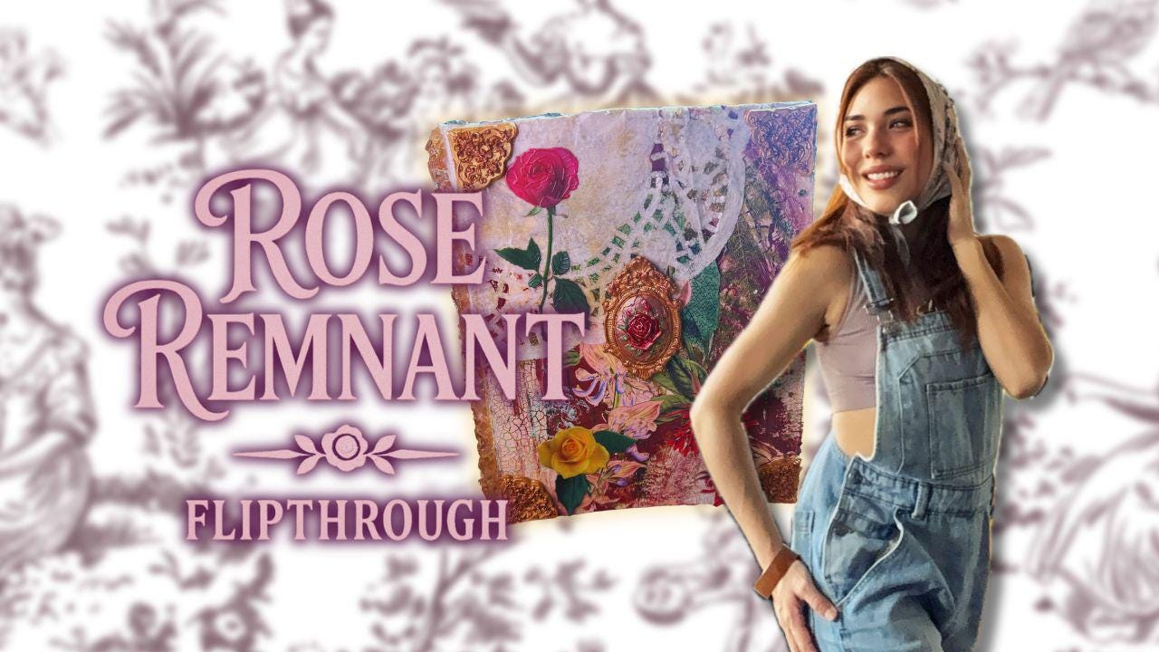 The Rose Remnant is a handmade junk journal, featuring a jeweled spine, filigree corners, and a personal story of resilience.