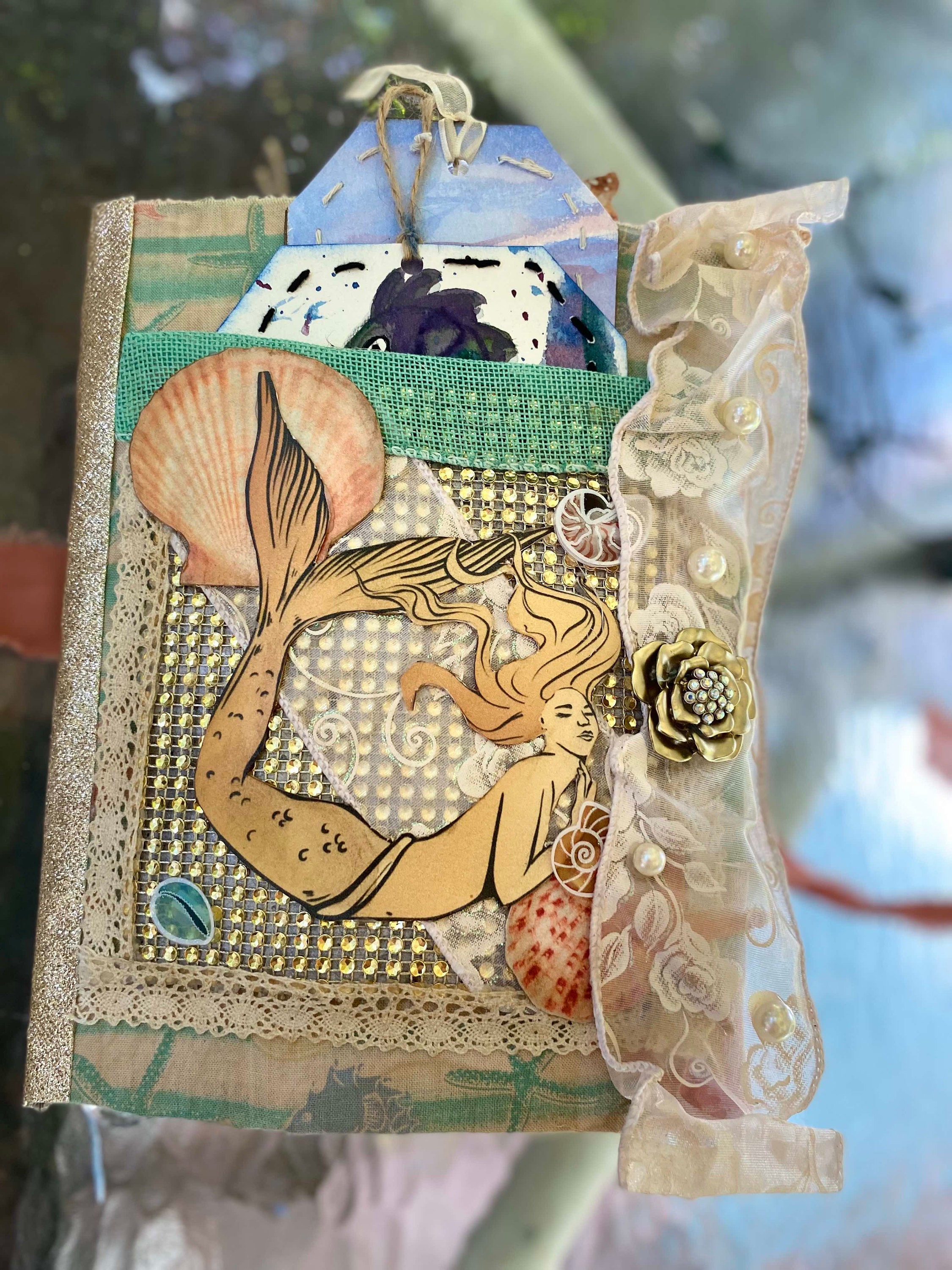 For centuries, mermaids have enchanted poets and artists with their magical beauty. When I embarked on my summer junk journal project, the allure of these mythical beings consumed my imagination. To create a cohesive journal, I needed a guiding theme. Thus, I envisioned an explorer's journey to a realm where mermaids swam and sang all day.