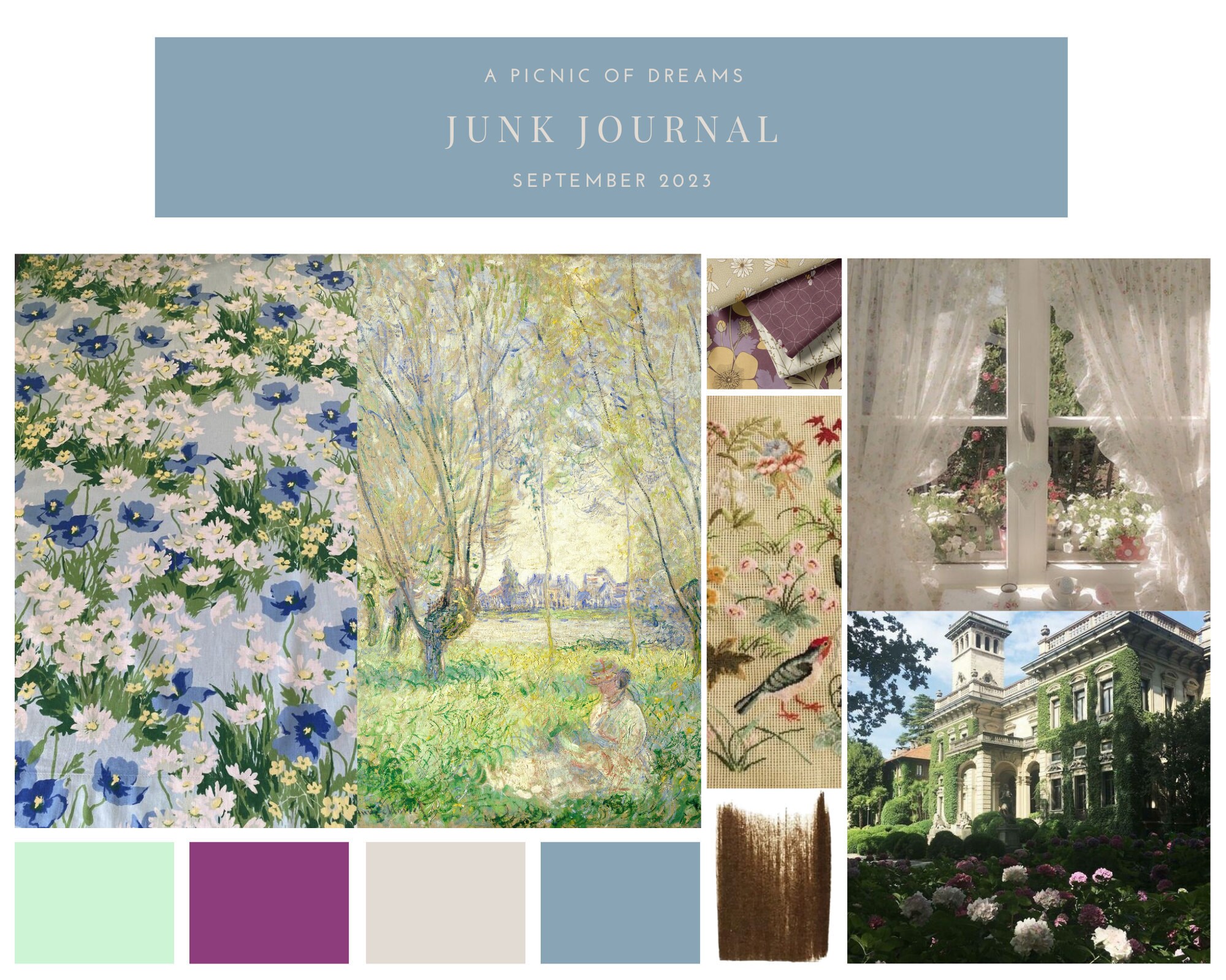 Summer is almost gone, and to celebrate, I started on a cottage core-inspired junk journal. For this project, I wanted to challenge myself by using acrylic paint as the main cover decor and incorporating naturally pressed plants and flowers to adorn it. As I continue its construction, I will explore different image-transferring methods with ideas to use watercolor in my ephemera.