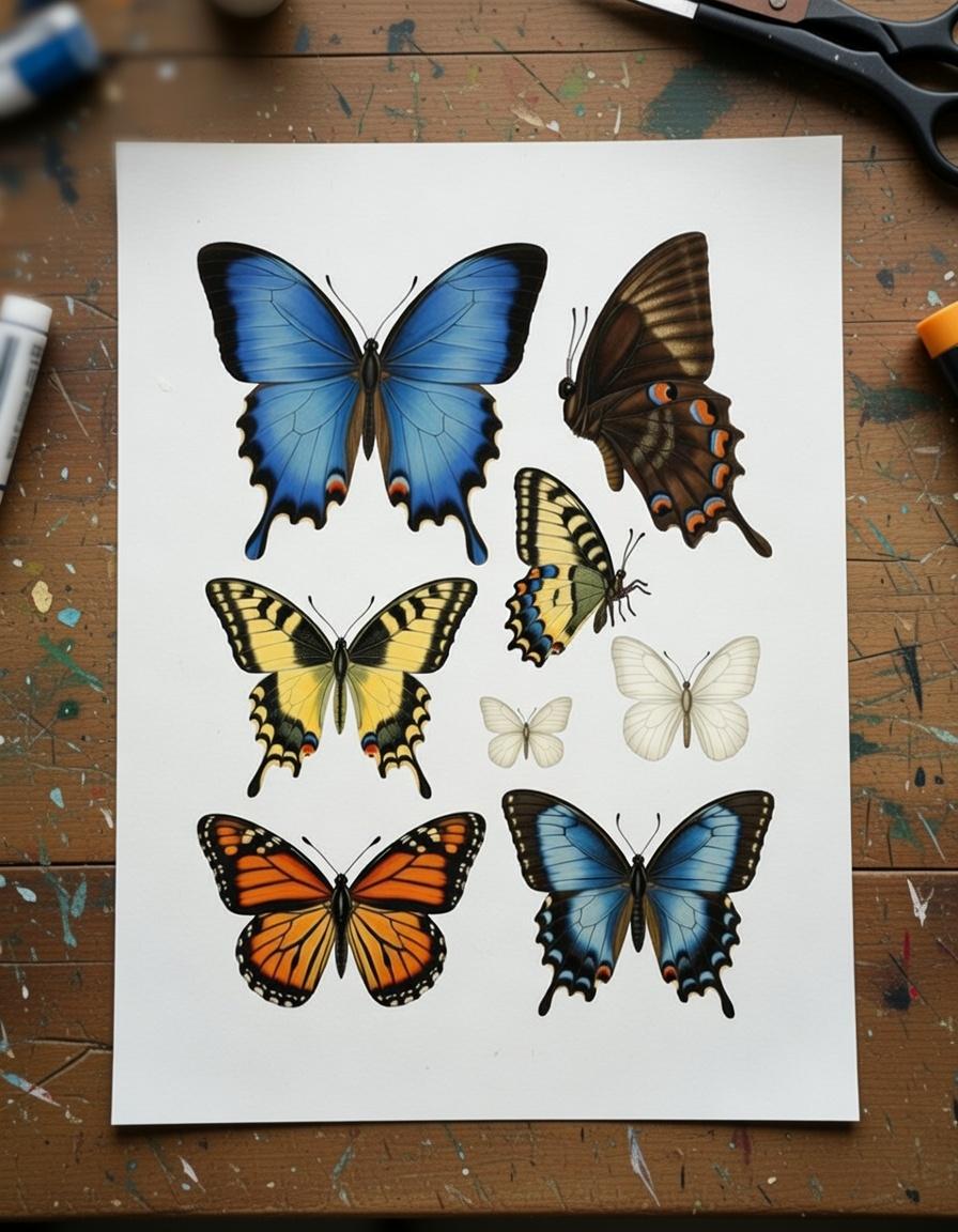 Multiple sheets of detailed vintage butterfly illustrations (perfect for fuzzy cutting & fussy cutting)